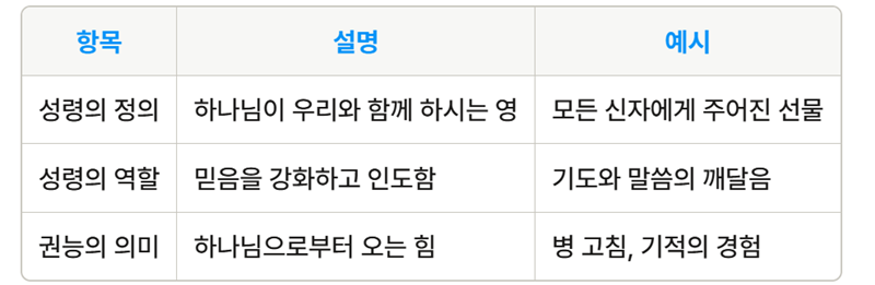 성령은 믿는 자들에게 주어진 하나님의 임재로, 우리를 인도하고 도우며, 믿음을 강화하는 역할을 합니다. 이러한 성령의 권능이 어떻게 작용하는지를 이해하는 것이 중요합니다.