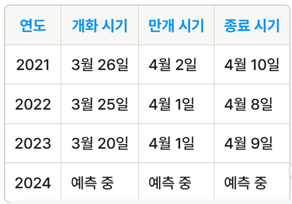 1. 오사카의 벚꽃 개화시기