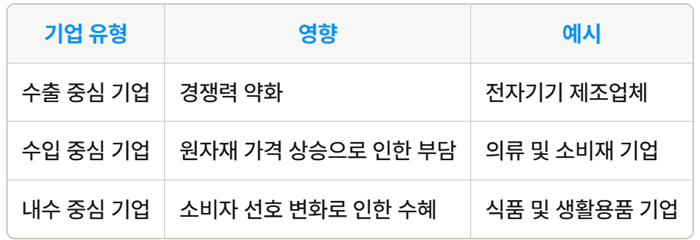 관세 인상은 국내 기업의 매출과 이익에 직접적인 영향을 미칩니다. 특히 수출 중심의 기업은 해외 시장에서의 경쟁력이 약화될 수 있습니다.