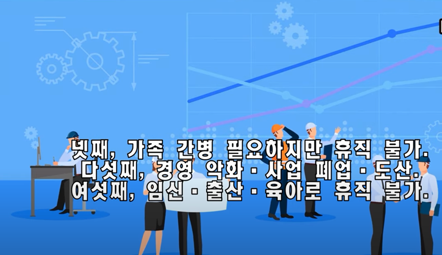 - 개인 사정 관련: 사업장 이전으로 출퇴근 시간이 3시간 이상으로 늘어난 경우, 질병이나 부상으로 업무 수행이 어려운 경우, 가족의 간병이 필요한 경우 등