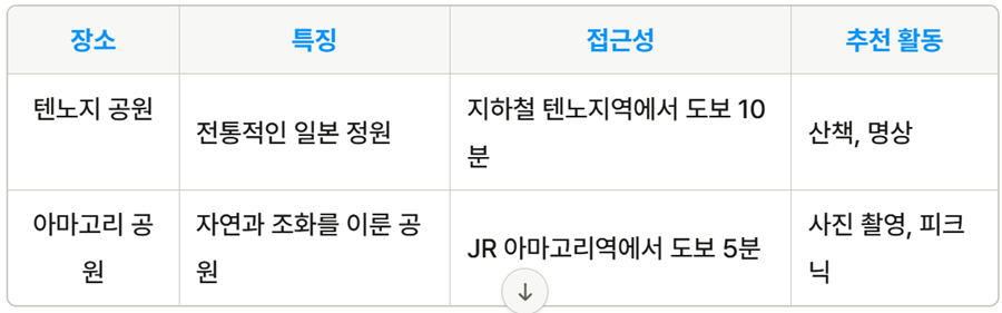 예를 들어, 텐노지 공원과 아마고리 공원은 상대적으로 덜 알려져 있지만 아름다운 벚꽃을 감상할 수 있는 장소입니다.
